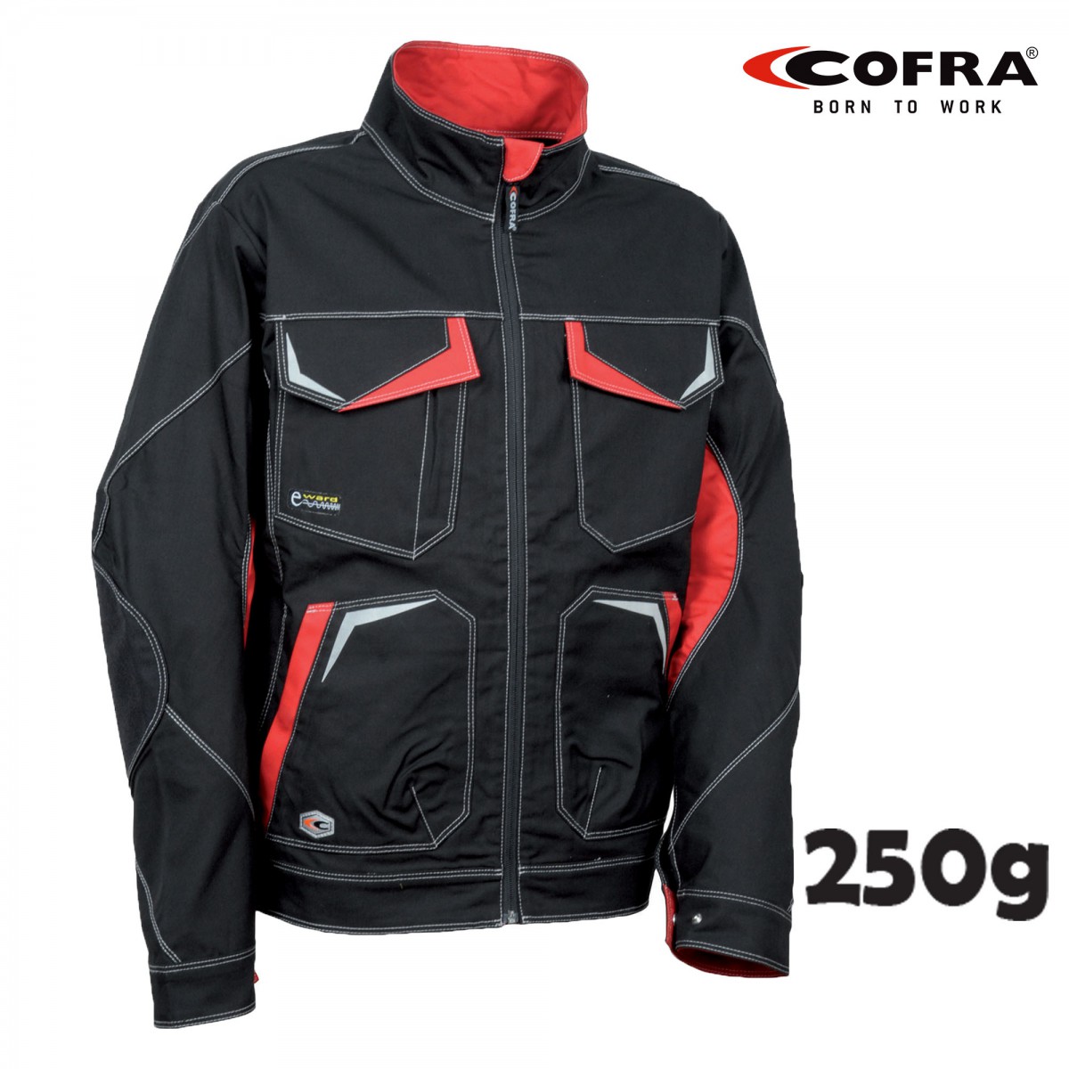 Jakna ima dva stranska žepa, dva žepa na prsih s poklopcem z zapiranjem na ježka, široka notranja žepa, žep za pisalo in žep za telefon z E-WARD zaščito pred elektromagnetnim sevanjem. YKK zadrga in ergonomsko oblikovan kroj rokavov in s pritiskači nastavljiva širina, ojačanje na komolčnem predelu. Odsevni detajli.