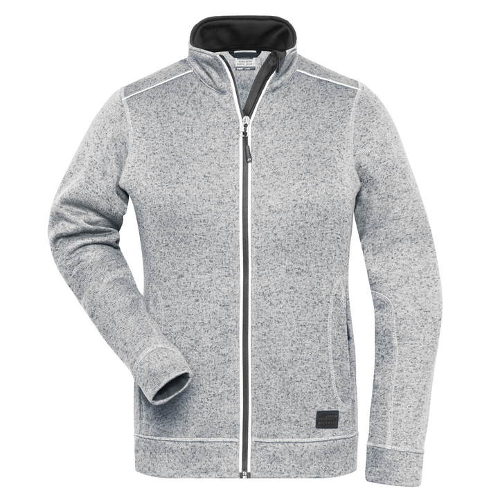Rahlo tajlirana, melange videz tkanine, stoječi ovratnik, polna dolžina zadrge z zaščito za brado, odsevni elementi na zadrgi in hrbtu, YKK zadrge, 2 stranska žepa s skrito zadrgo, 2 notranja žepa, hrapava notranjost.