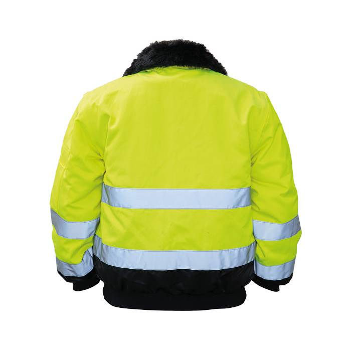 Opis Vodoodporna jakna z odstranljivim ovratnikom, podlogo iz umetnega krzna, snemljivimi rokavi, manšetami na rokavih, žepom za mobilni telefon, 2 stranskima žepoma, notranjim žepom, žepom na rokavu, 2 prsnima žepoma, certificirano v skladu z EN ISO 20471:2013 razred 3, lahko se nosi na 4 različne načine, pranje na 40°C.