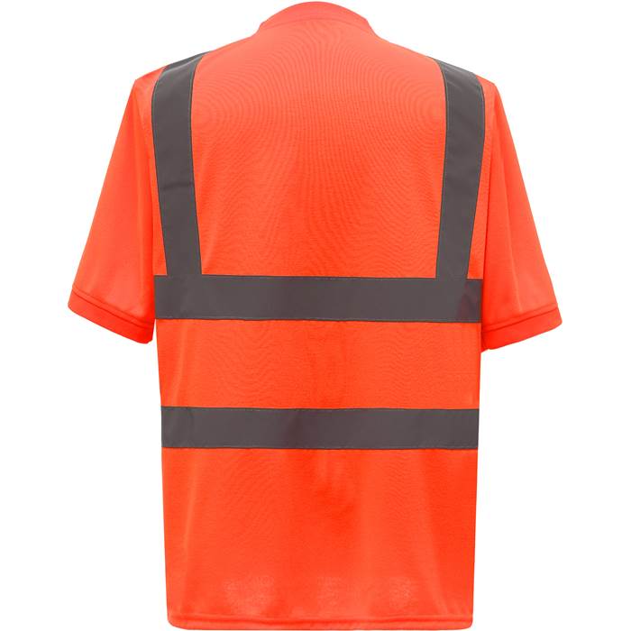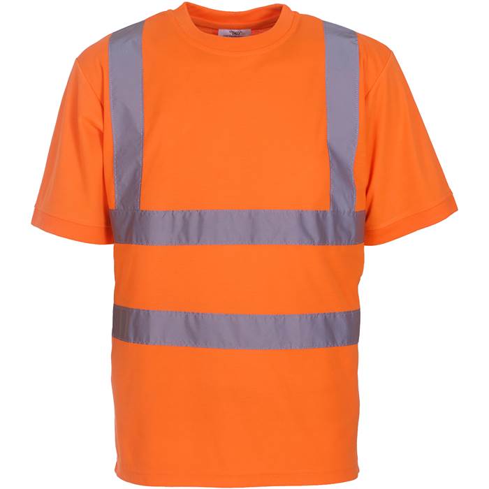 Opis Manšete na ovratniku, rokavih in robu iz rebraste tkanine, material mehak na otip, certificirano v skladu z razredom 2 EN ISO 20471, oranžna je tudi certificirana RIS-3279-TOM, zagotovljene odsevne lastnosti v skladu s standardom EN za 25 pralnih ciklov, 1 odsevni trak čez vsako ramo, dva 5 cm široka odsevna traka okoli telesa (brez zaščitne funkcije), pranje pri 40°C.