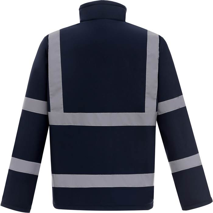 Opis Vodoodporna jakna (vodni stolpec 8,000mm), vodotesne zadrge, elastični rob z vrvico, prilagodljivi rokavi, 2 stranska žepa in 1 žep na prsih z zadrgo, Hi-Vis barve certificirane v skladu s standardom EN ISO 20471 razred 3, druge barve pa zagotavljajo povečano vidljivost, zagotovljene odsevne lastnosti v skladu s standardom EN za 25 pralnih ciklov, 2 odsevna trakova na rokavih, 1 odsevni trak čez vsako ramo, dva 5 cm široka odsevna trakova okrog telesa, pranje pri 40°C.