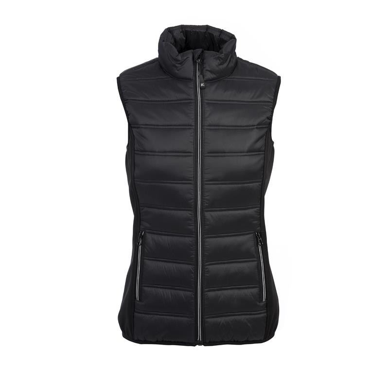 Opis Waistcoat in composite fabric - Body: nylon 20D with polyester 300T lining - Soft polyester padding - Sides: softshell 3 layers with membrana TPU - Waterproof 3000 mm/H2O - Breathability 1000 g/M2/24h - Zippers with contrasting detail - Two pockets with zip - Two inside pockets - Elasticized fabric on the armhole - Elasticized fabric at bottom