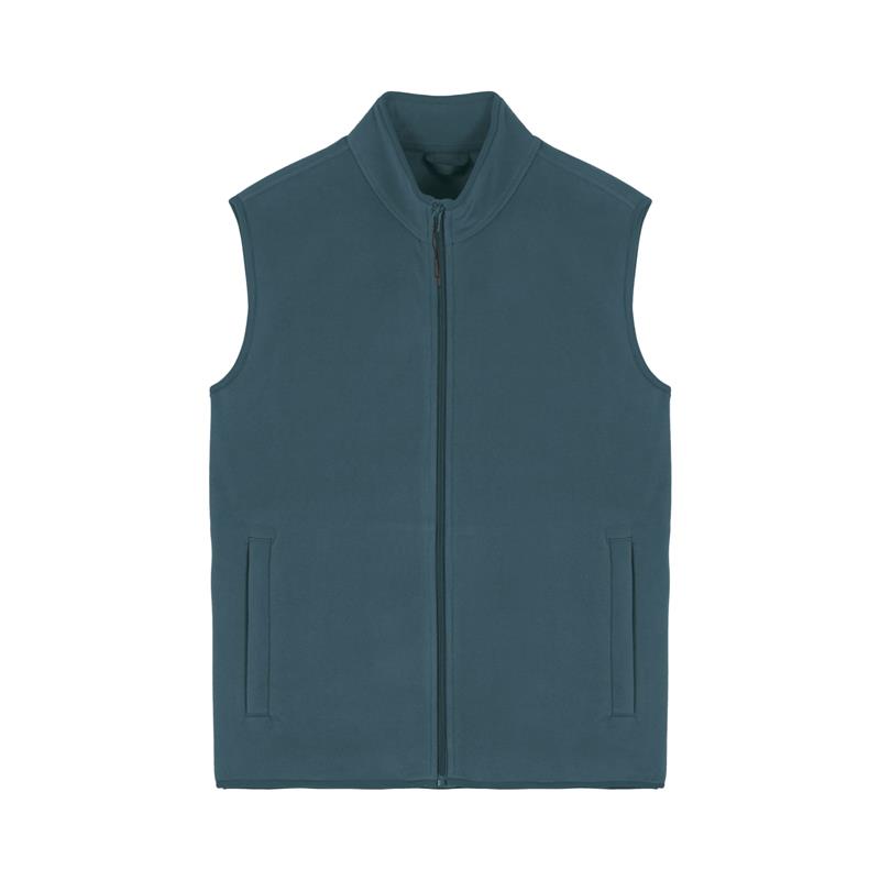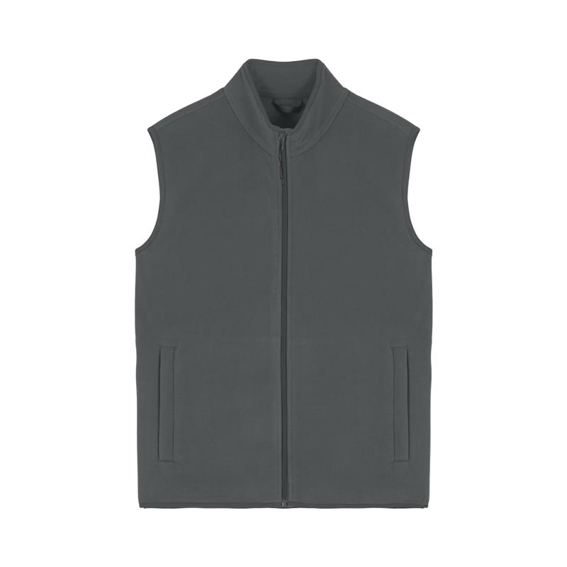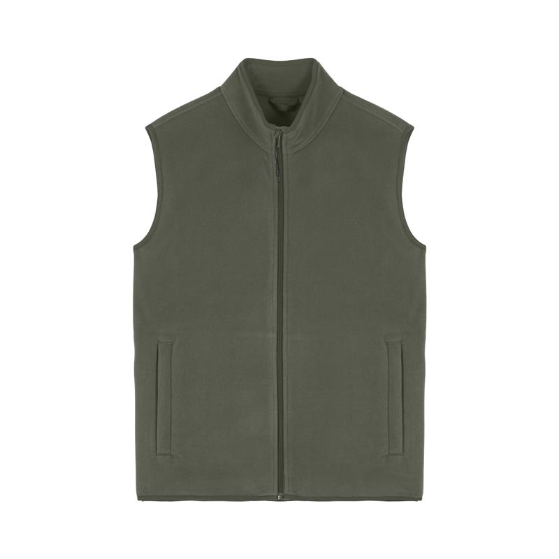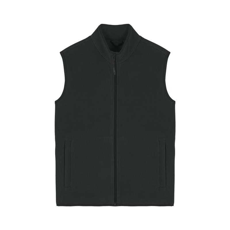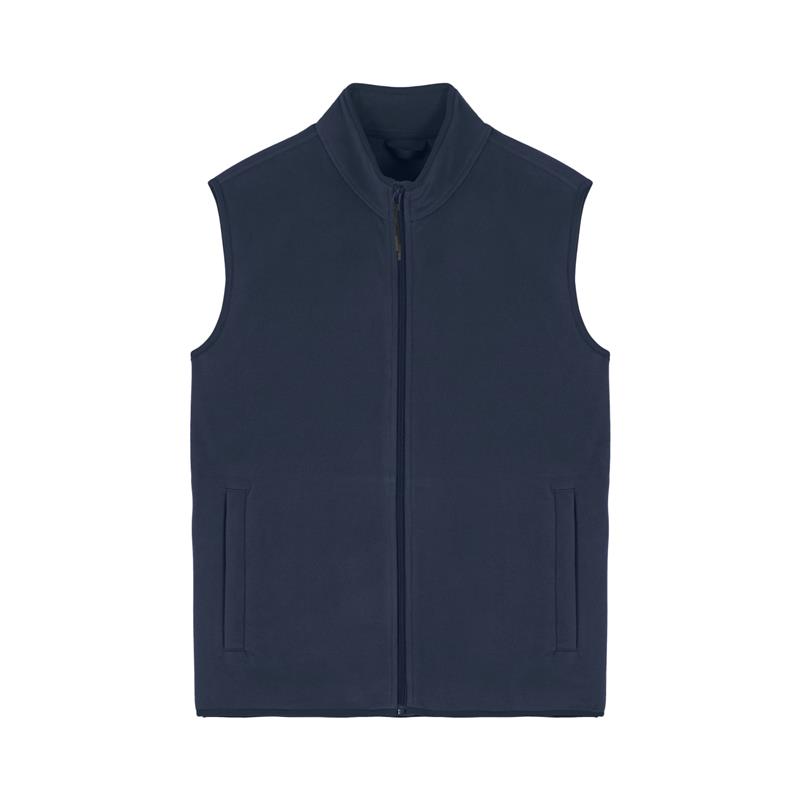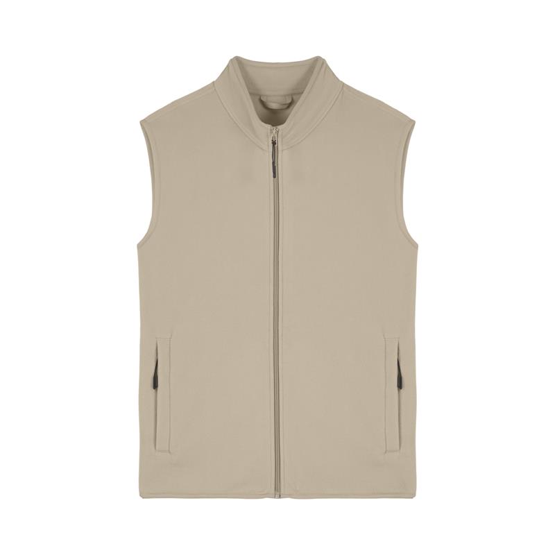 Sleeveless Elastic binding at neck edge, armhole and hem Inside back neck grosgrain loop Nylon coil zipper with metal puller and cord ending Brushed fabric with Anti piling finish on inside and outside Front side welt pockets with zip opening Inside back neck tape in recycled polyester