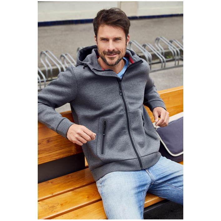 Opis Nastavljiva kapuca, kenguru žep z zadrgo, YKK zadrge, elastičen in prijeten material.