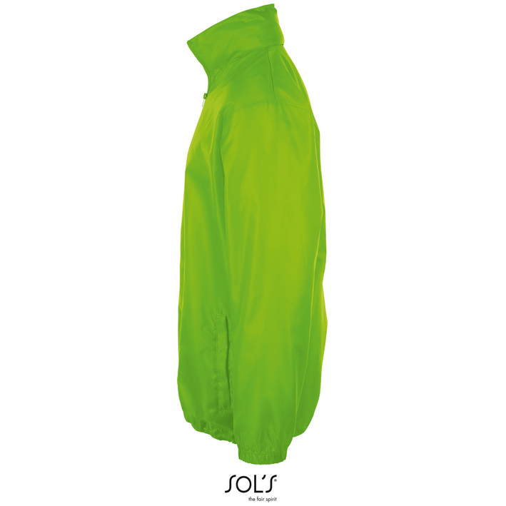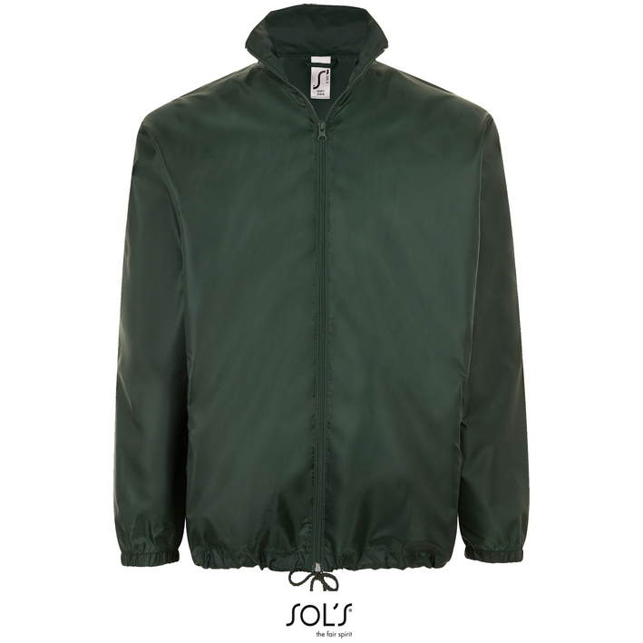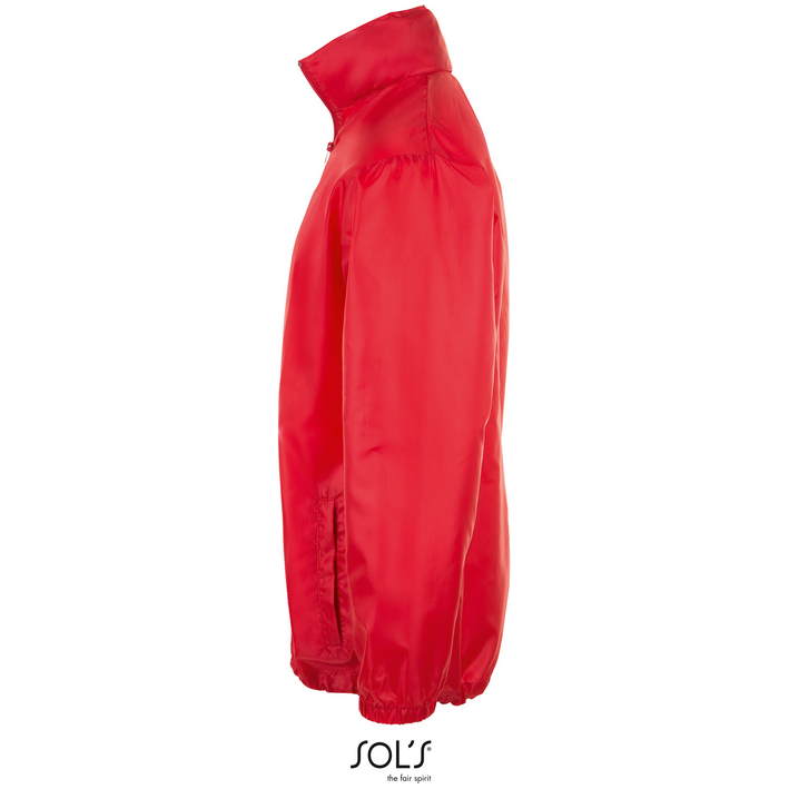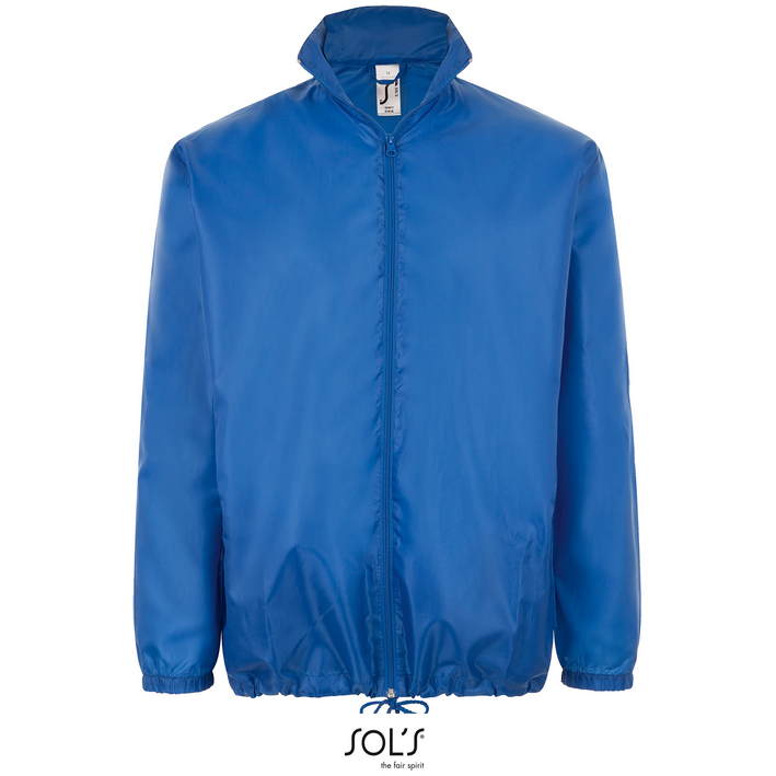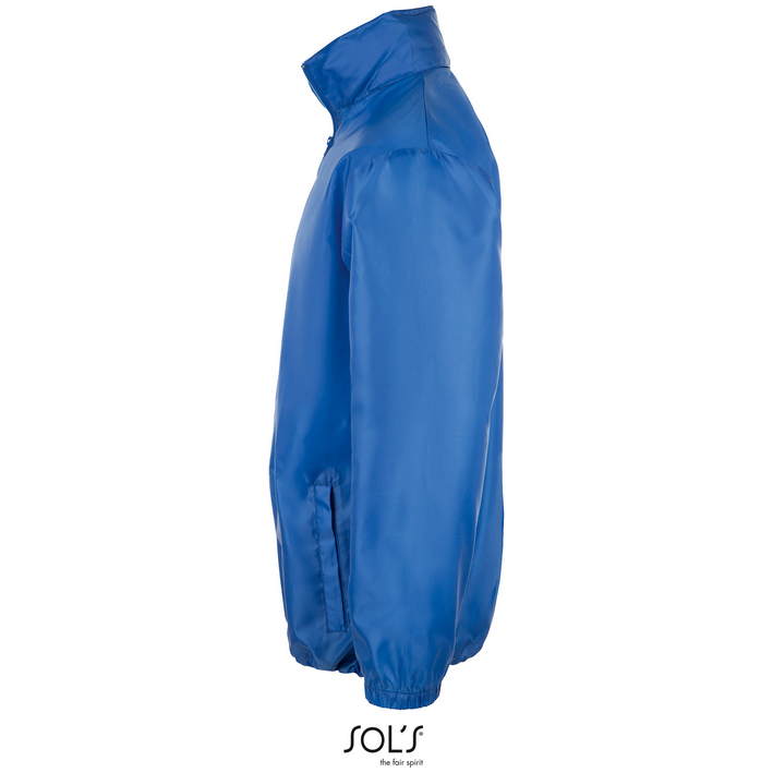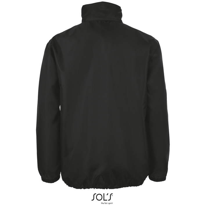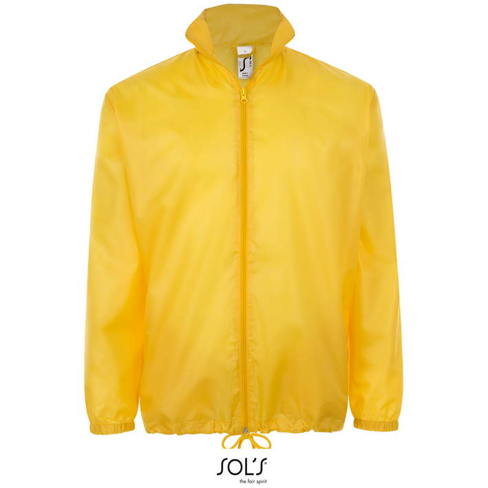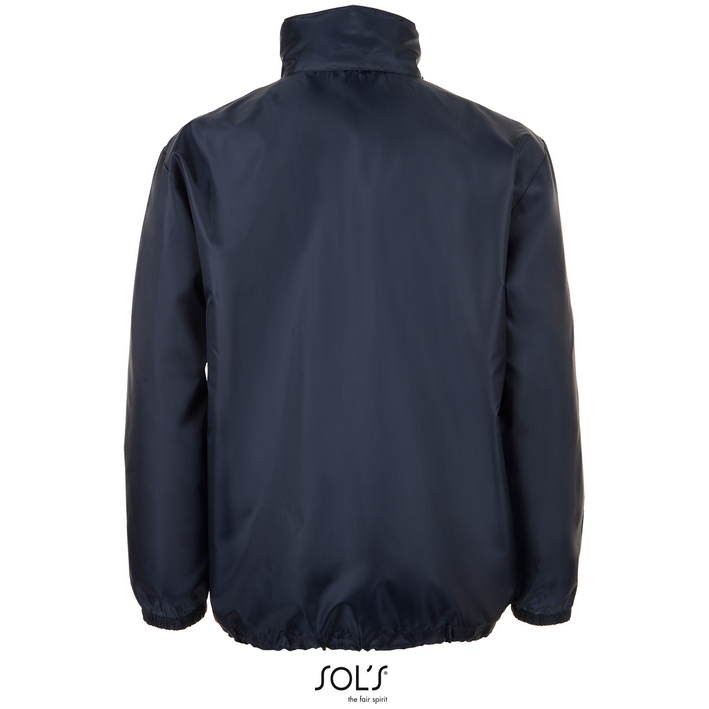 Kapuca skrita v ovratniku, vrvica za zategovanje na kapuci in na dnu jakne, 2 žepa z zadrgo, elastični patenti, zračna, vodoodporna.