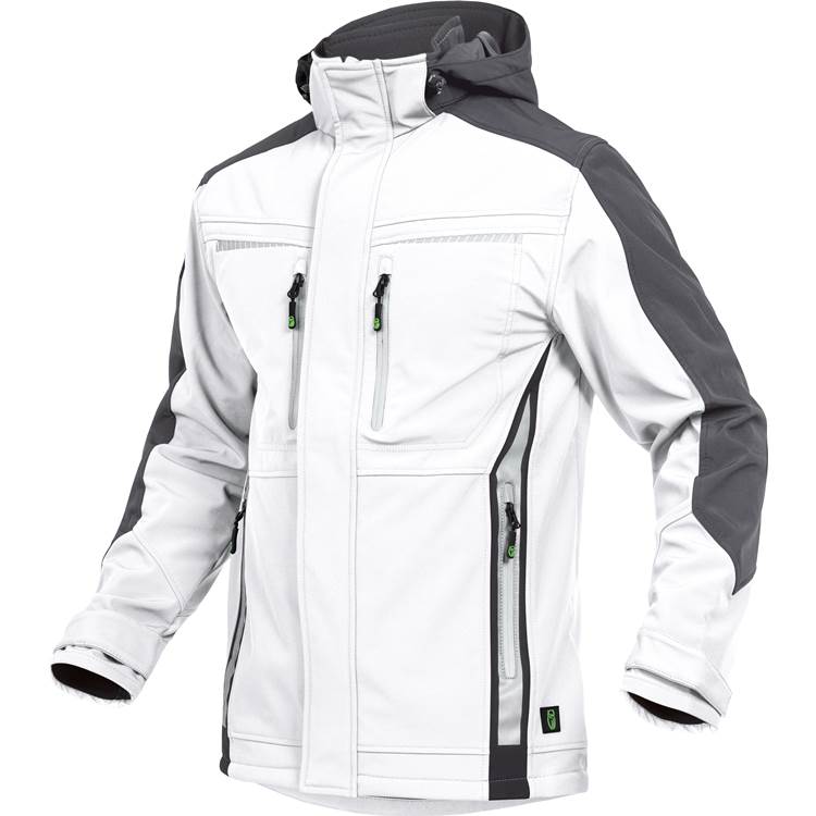 Leibwächter, robusten 3-slojni laminatni softshell (Twill 75D/TPU membrana/mikroflis), odsevniki za dobro vidljivost, snemljiva in nastavljiva kapuca z elastično vrvico,sprednje zapenjanje s skrito kakovostno zadrgo in pritiskači ter zaščito za brado, manšete z nastavljivimi ježki, nastavljiv rob jakne z elastično vrvico, podaljšan hrbtni del, žepi: 2 prsna žepa z vodoodbojno zadrgo, 2 žepa z vodoodbojno zadrgo in prostornimi notranjostmi, 2 velika notranja žepa, material: 100 % poliester (twill) + TPU (membrana) + mikroflis, 260 g/m², zračno: 3000 g/m²/24h, vodoodporno: 8000 mm.