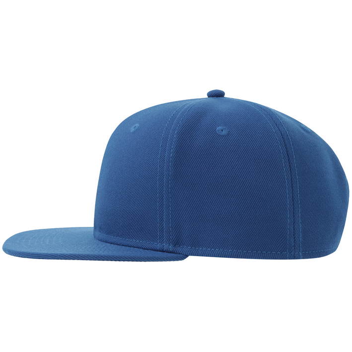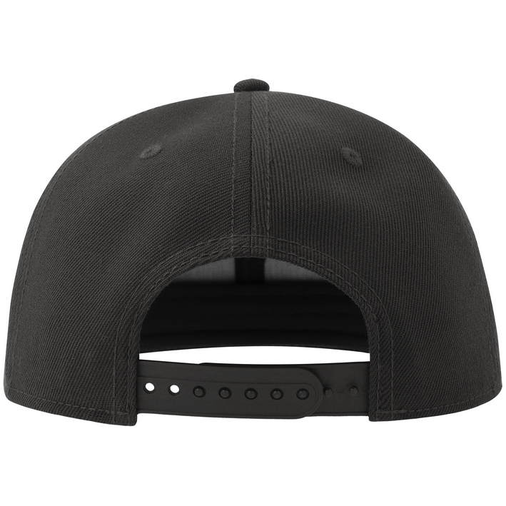 Opis Sustainable replacement version of Kid Snap Back (article: 33.0176), flat peak, recycled buckram, sweatband made from recycled polyester twill, laminated front panels, high cap profile, stitched eyelets, recycled snap fastener, TearAway label, hand wash, do not iron, not suitable for tumble drying, do not dry clean