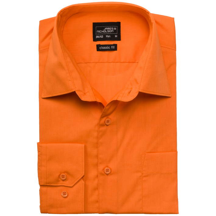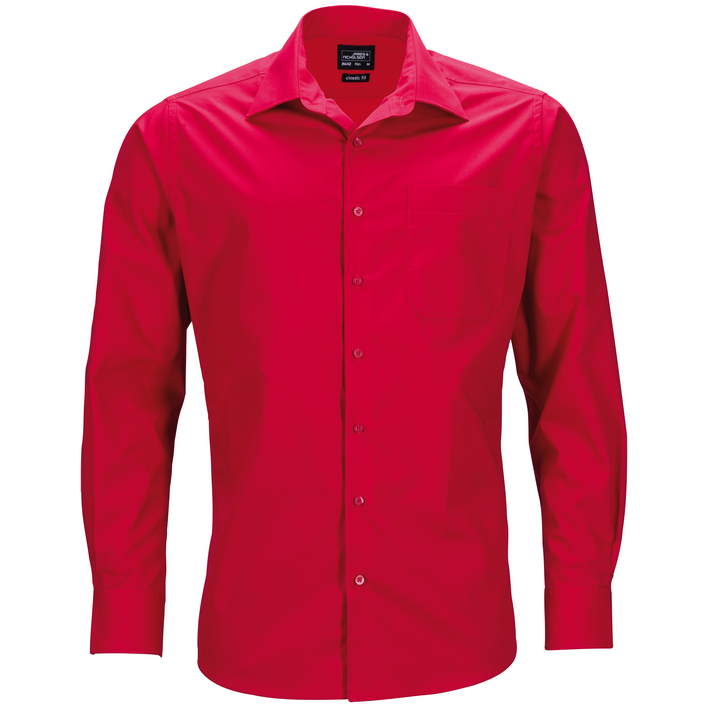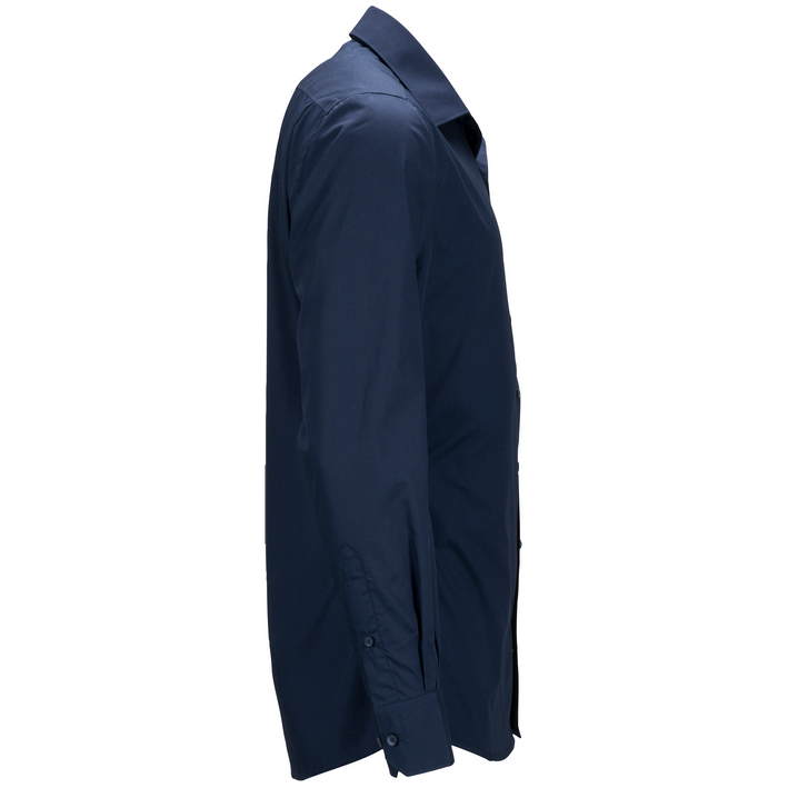 klasičen, rahlo tajliran kroj, klasičen ovratnik, guba pod hrbtnim ramenskim sedlom, naprsni žep, zaobljen spodnji rob, tkanina je bila obdelana s postopkom za enostavno vzdrževanje, pranje pri 60° Celzija