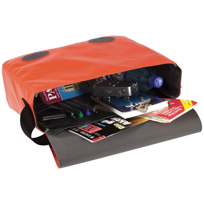 prostoren glavni predelek z elementi organizatorja in plosek notranji žep, široka naramnica, velik poklopec (obsežna površina za tiskanje), pritrjevanje z Velcrom®, dimenzije: 37x28x12 cm