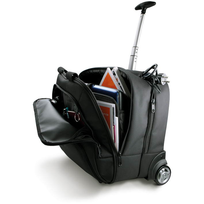 Opis Telescopic handle, 2 front pockets, padded main compartment for 15" laptop, main compartment with organizer section, 2 main compartments, can be attached to the telescopic handle of a trolley, capacity: 28l, size: 43.5x20x36cm