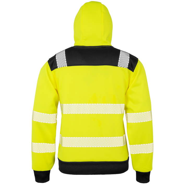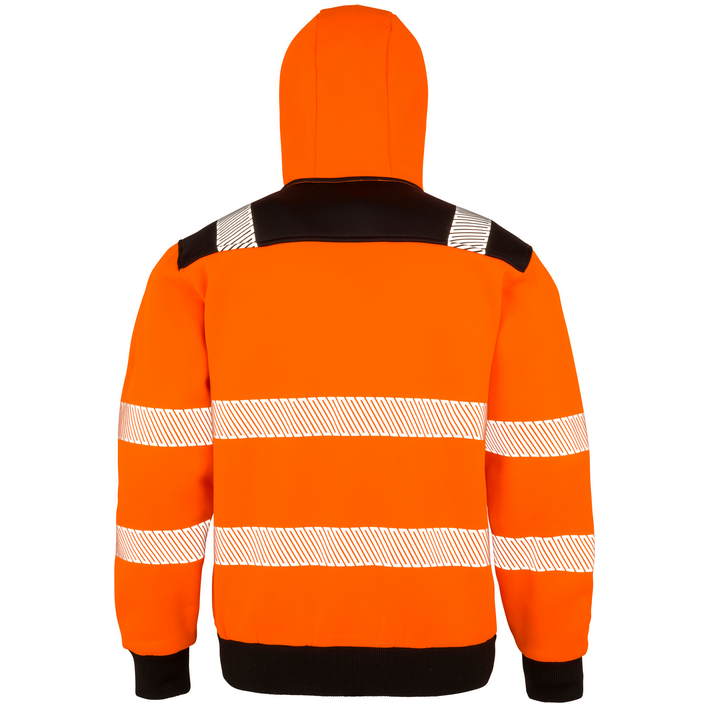 Zračna tkanina odporna na veter, kapuca z regulacijsko vrvico, široki zaključki na rokavih in pasu iz rebraste tkanine, YKK zadrga, 2 stranska in 1 naprsni žep z zadrgo, ergonomsko podaljšanje v predelu hrbta, topla in kosmatena notranjanjost, zanka za obešanje, natisnjeni mehki odsevni elementi (brez zaščitne funkcije), nevtralna etiketa z označbo velikosti. Primerno za pranje pri 40° C z največ 25 ciklov pranja. Skladno s strandardom EN ISO 20471: 2013 A1: 2016 razred 2, oranžna dodatno še RIS-3279-TOM razred 2.
