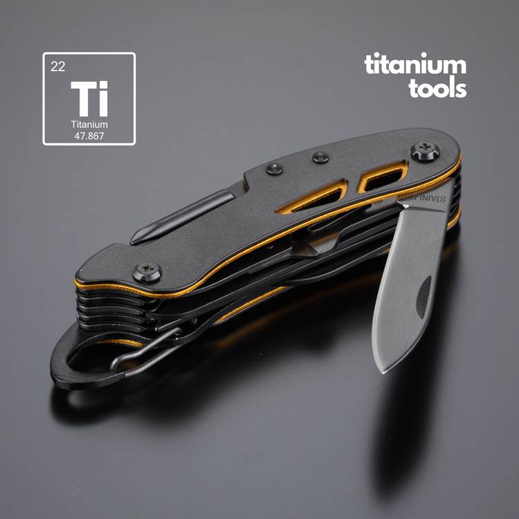 Opis Žepni nož Optima v novi izvedbi je izdelan iz visokokakovostnega nerjavečega jekla s prevleko iz titana, ki daje nožu povečano trdoto in dodatno odpornost proti koroziji. Najpomembnejši elementi: škarje, nož, žaga za les, odpirač za steklenice in pločevinke, strgalo za ribe, izvlekač zamaškov, prebijač (za preluknjanje npr. pločevinke s sokom), vdevalnik niti (za krpanje zračnic, šivanje rafta (splava), krpanje gume), pilica za nohte in križni izvijač. Žepni nož ima tudi karabin, tako da ga imate lahko vedno varno pri sebi.