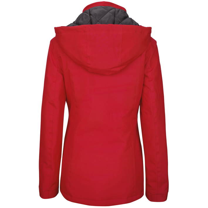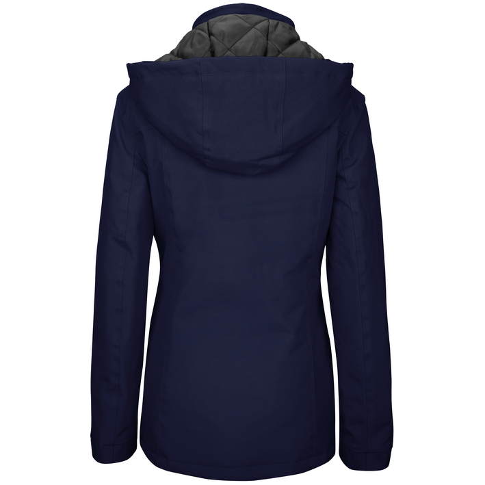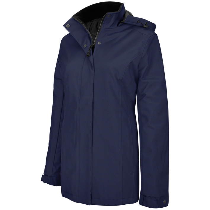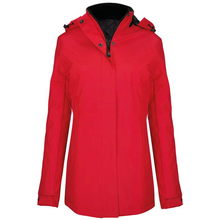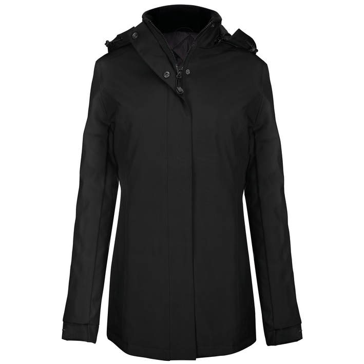 ovratnik z notranjim slojem iz flisa, snemljiva kapuca, zadrga je prekrita s prekrivno letvijo in nevidnimi pritiskači za zaščito proti vetru, dva žepa z zadrgo, notranji žep z zadrgo, dostop do površine za dotisk ali vezenje je prek zadrge na podlogi