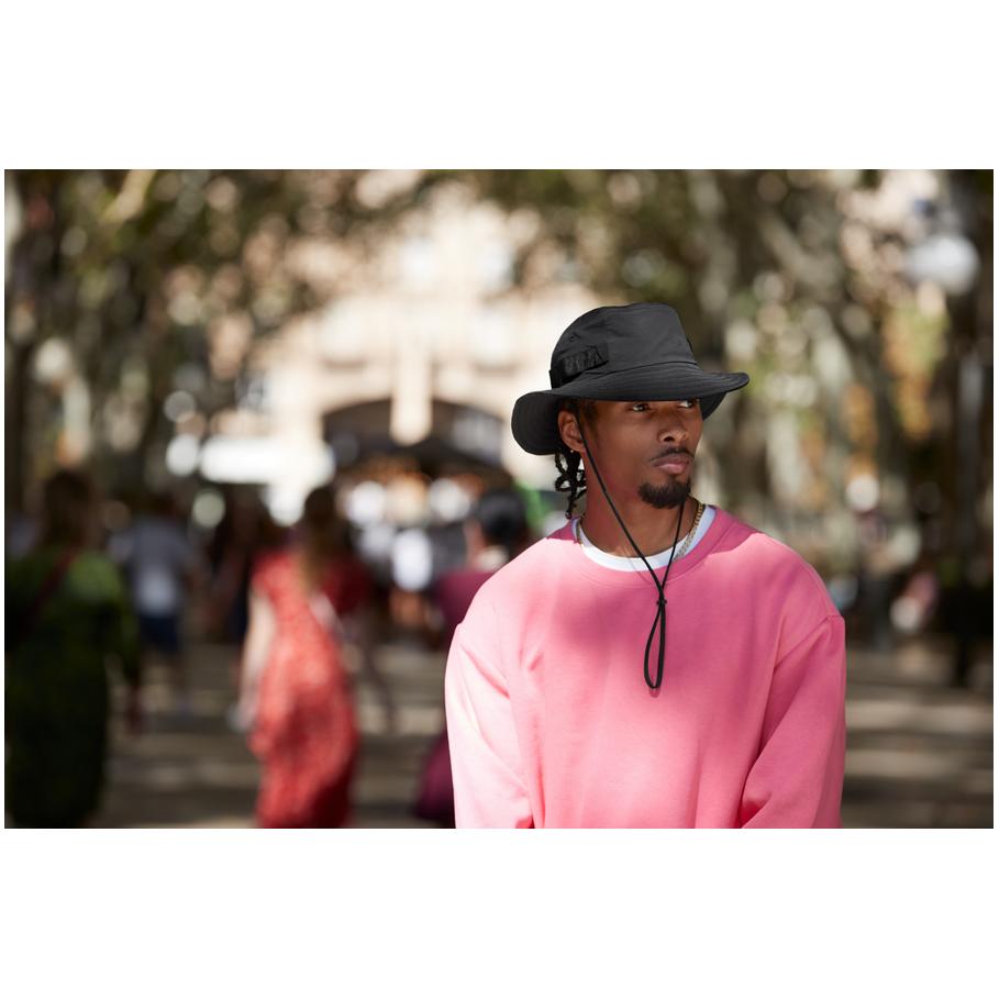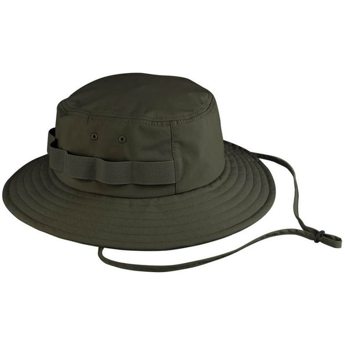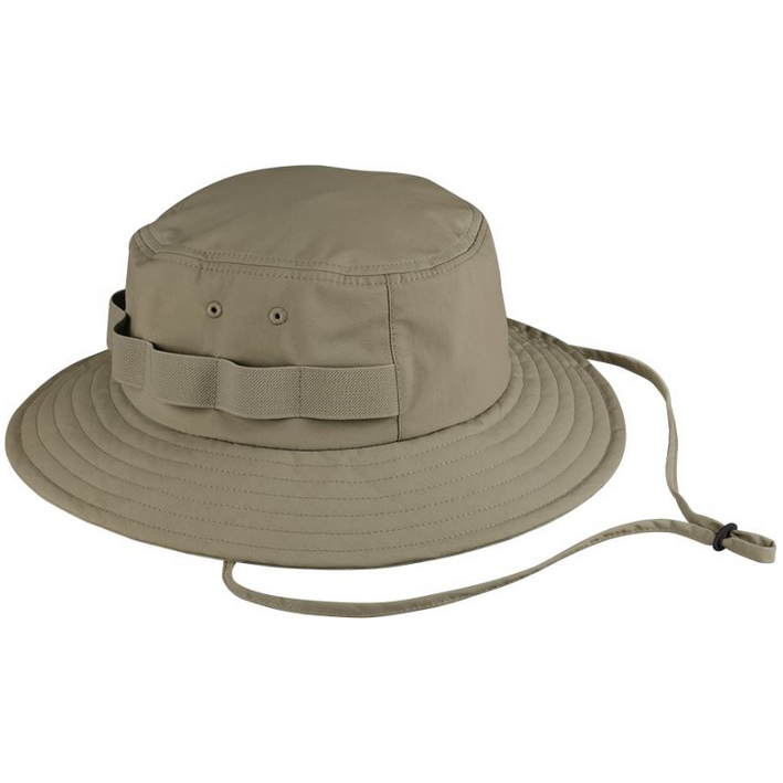 Water repellent material, elastic loops at the side, adjustable chin strap, sweatband made from Coolmax®, stitched eyelets, UV protection 50+, TearAway label, in 2 sizes available in, sponge clean only